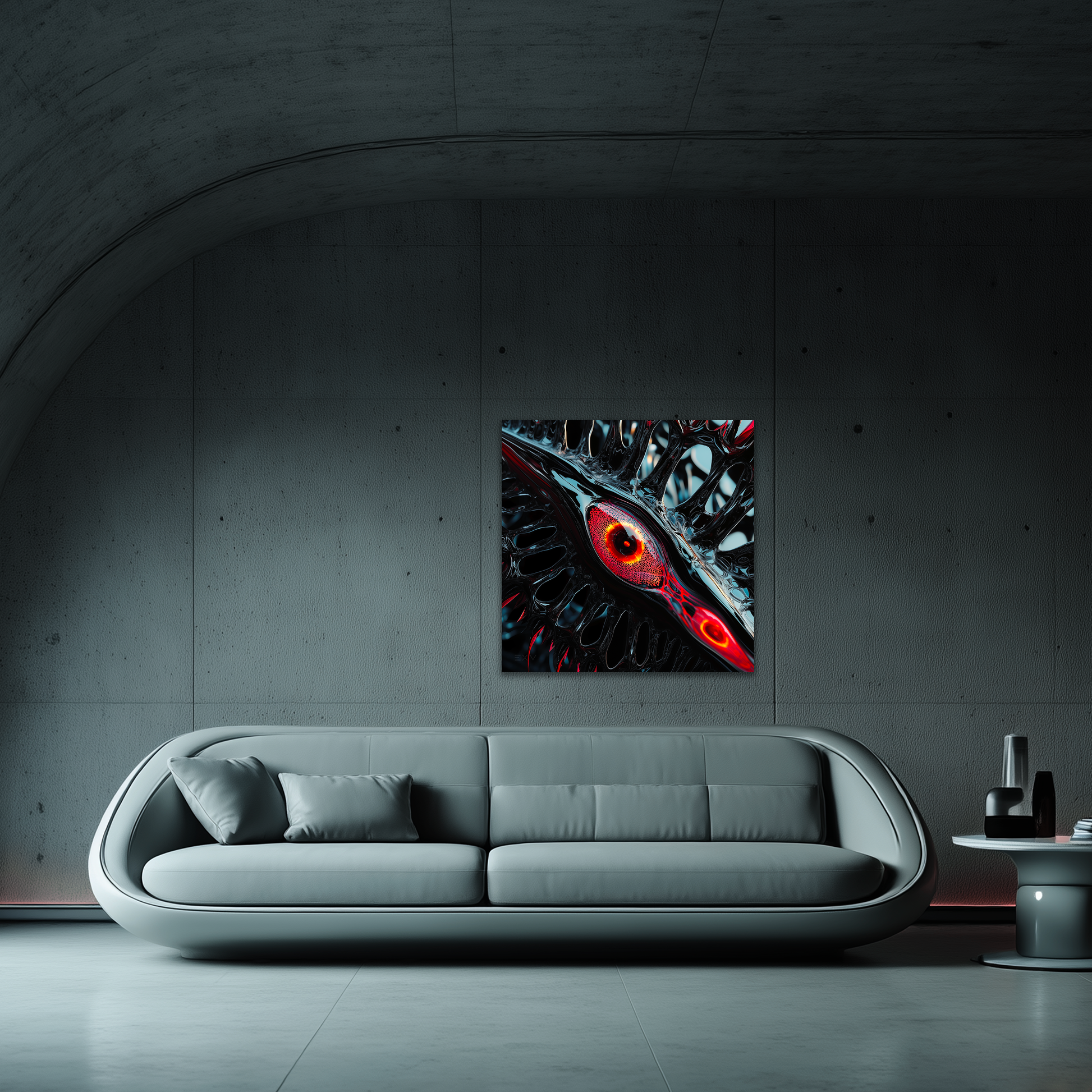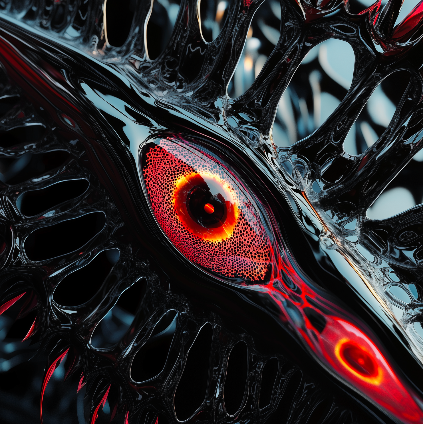 Un œil unique, incrusté dans une forme organique silencieuse, semble s’éveiller au creux d’un monde figé.